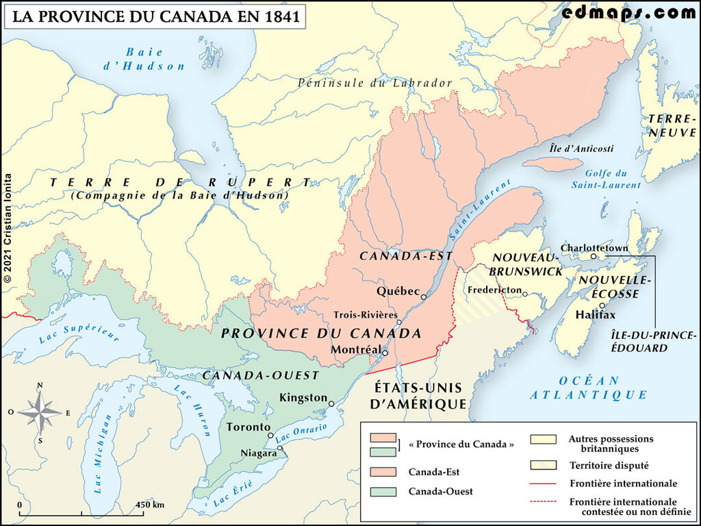 L'Acte d'Union de 1841, mis en œuvre suite au rapport de Lord Durham sur les rébellions de 1837-1838, restructure fondamentalement l'Amérique du Nord britannique en unissant le Haut-Canada et le Bas-Canada en une seule Province du Canada, avec d'importantes implications administratives et territoriales.